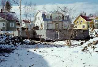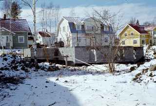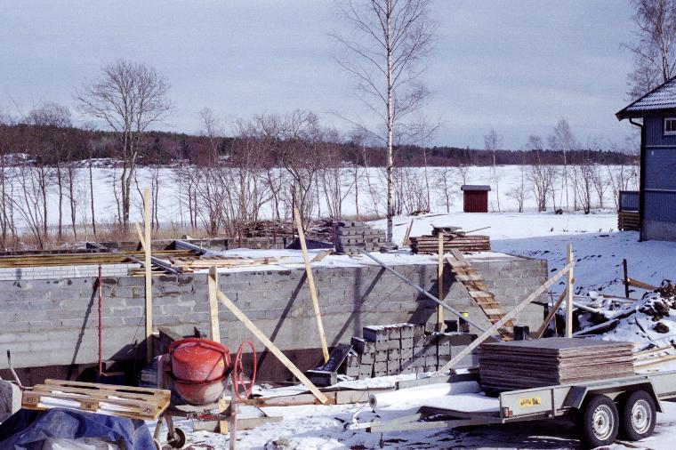 Cellar almost done. Note snow on the ground and that the sea is still iced-over.