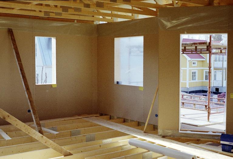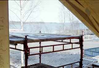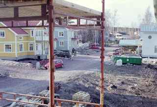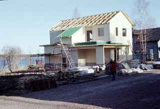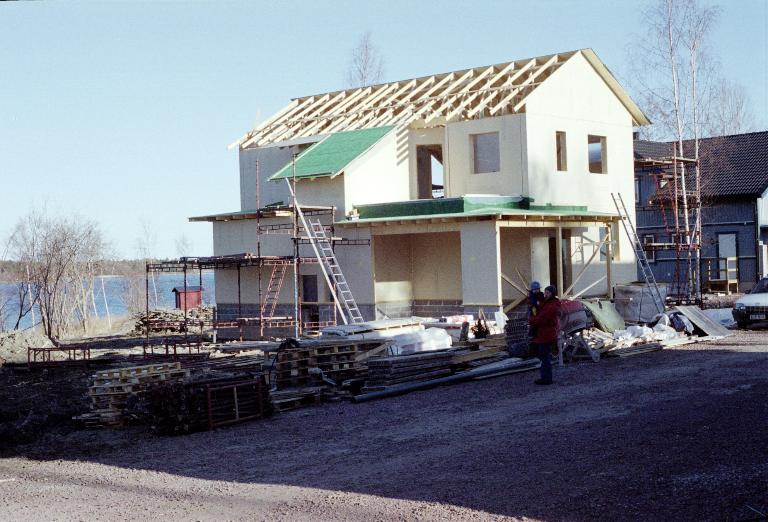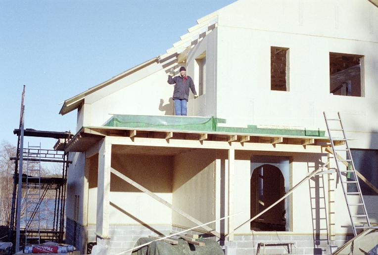 Ovan ser du huset från nordväst, med byggherren själv på balkongen.