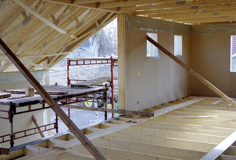 Övre våningen, riktning sydost (vänster) samt nordväst med sovrummet (höger).