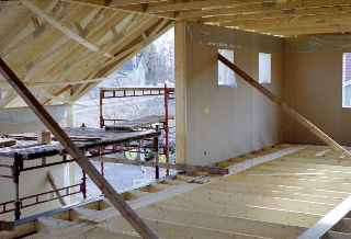 Övre våningen, riktning sydväst (vänster) samt nordost med absiden i mitten av bilden (höger).