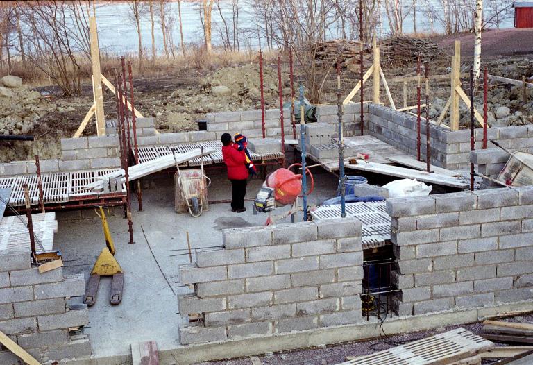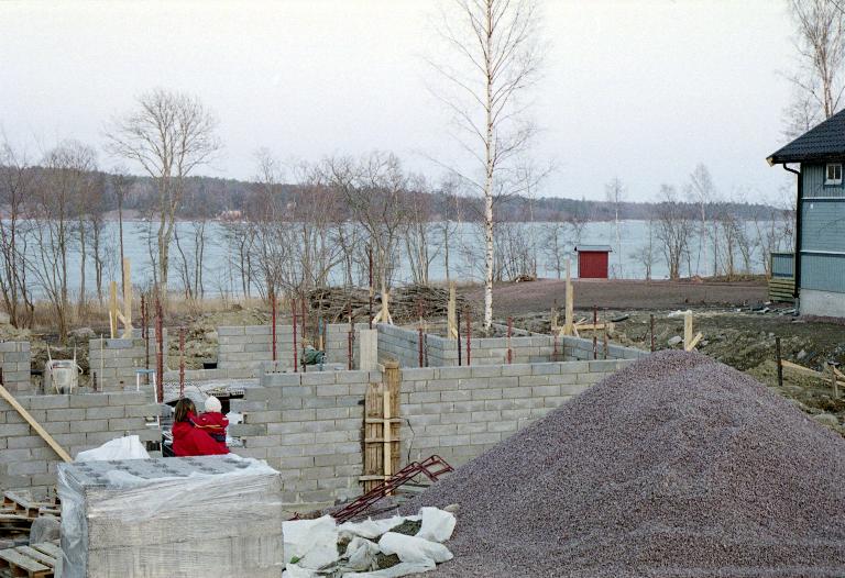 På bilderna ovan ser du källarväggarna halvfärdiga samt Anni och Ulla-farmor som fikar på lekplatsen med bygget i bakgrunden.