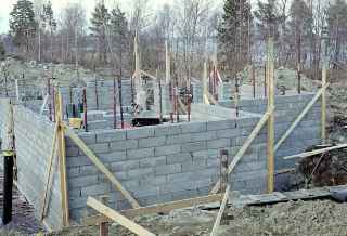 Sista varvet leca-block. Notera gjuten förstärkningsbalk på västra väggen
